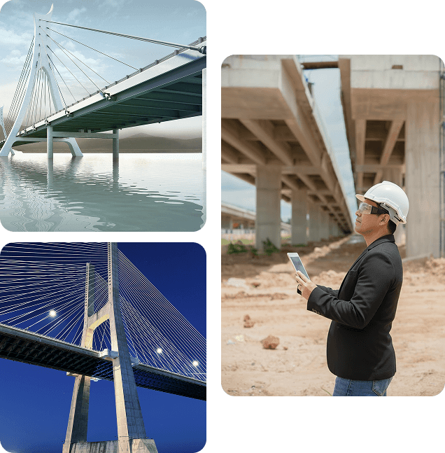 Diseño de cualquier tipo de puente para proyectos viales complejos. Diseño conceptual y definición de las bases de licitación. Servicio de diseño constructivo y de detalle. Asistencia técnica durante la fase de construcción.
